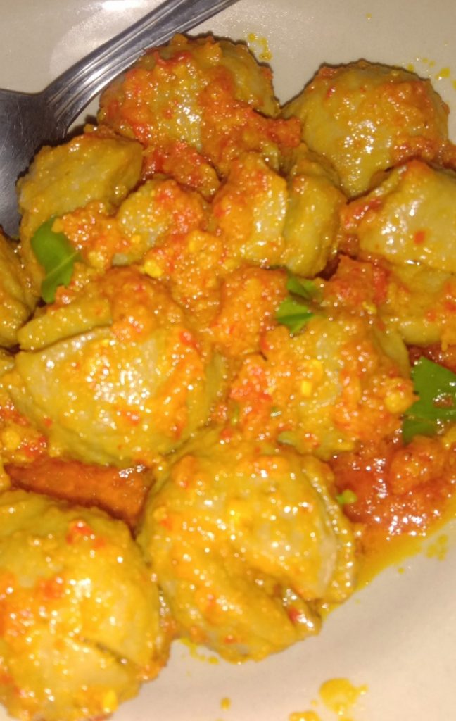 1.Raebus bakso sebentar, agar tidak berbau. Tiriskan airnya.